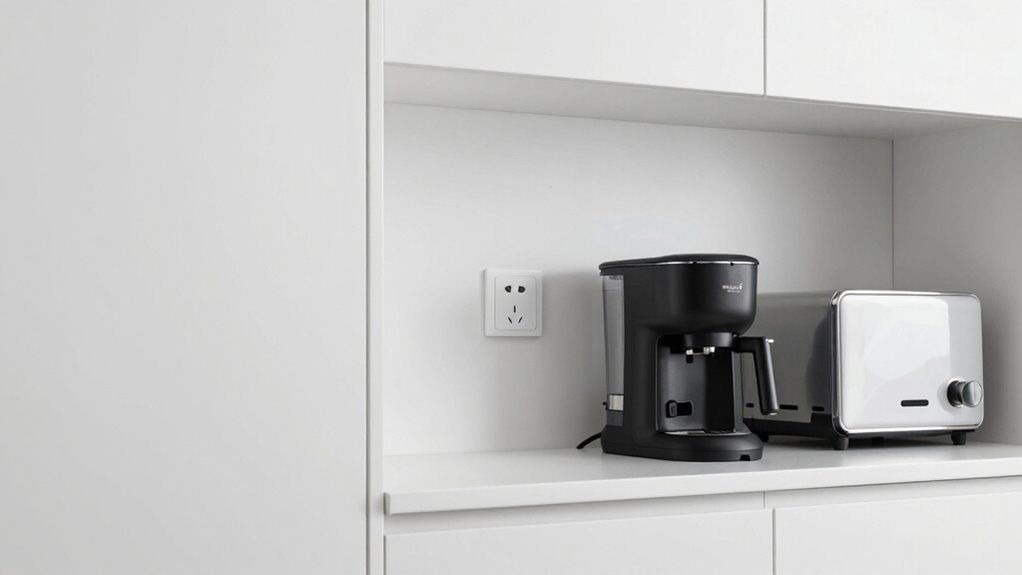 To guarantee your appliance garages are both functional and convenient, careful planning of outlet placement is essential. Consider the variety of appliance types you’ll store, ensuring outlets are positioned for easy access without clutter. Think about outlet durability, selecting locations that minimize wear and tear over time. When planning, keep these points in mind: