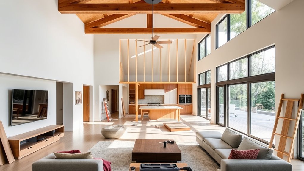 As you consider renovations, it’s wise to think about insurance implications. Your property insurance might need adjustments to reflect the increased value or new structures. You could face policy changes or premium shifts, so it’s essential to consult your provider. Updating your coverage guarantees you’re protected during and after the project, giving you peace of mind while your home transforms into exactly what you envision.