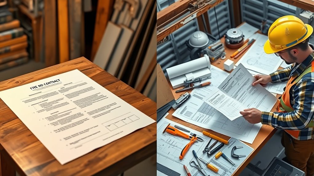 When choosing between fixed bid and cost-plus contracts for your remodel, consider your project’s complexity and your priorities. Fixed bid offers predictable costs and clear scope, ideal if you want budget certainty and minimal changes. Cost-plus provides flexibility for adjustments and unforeseen issues but requires ongoing transparency. Understanding these options helps you plan better and prevent surprises. Keep exploring to learn how to select the best contract type for your project’s needs.