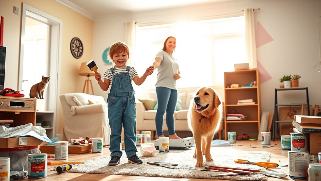 Remodeling with pets and kids at home means balancing fun, safety, and style. Did you know that 60% of homeowners report redesigning their space to better suit family life? With thoughtful planning, you can create a cozy, durable environment that keeps everyone happy and safe. Embrace the chaos, add playful touches, and choose resilient materials—your transformed home will be a sanctuary where memories are made, no matter how lively your household gets.