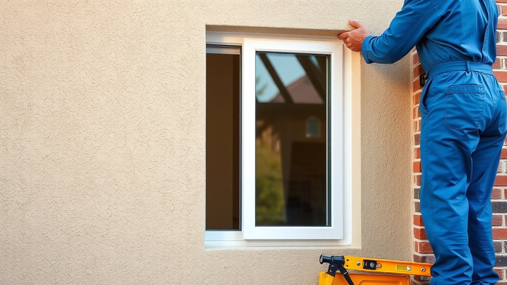 When replacing windows in stucco or brick walls, you must carefully plan and execute each step to guarantee a durable, waterproof installation. Start by inspecting and precisely measuring the opening, then carefully remove the old window and surrounding materials without damaging the structure. Properly install flashing, weather barriers, and sealants to prevent water infiltration. Achieve a seamless finish by matching the exterior surface and ensuring long-term durability—there’s more to mastering this process for professional results.