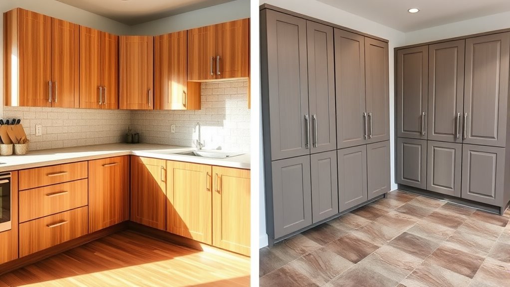 When choosing between resurfacing and replacing your cabinets, counters, and floors, consider your aesthetic goals and budget. Resurfacing offers a fresh look while preserving your space’s charm, perfect for minor updates and adding a new color or texture. Replacing, however, allows for a complete transformation—better durability and style options, ideal for extensive damage or a bold change. Exploring both options further can help you craft a stunning, personalized space that reflects your vision.