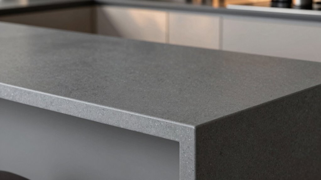 You’ll need to dedicate a tiny bit of effort to maintain this textured finish—think of it as whispering sweet nothings to your countertops daily. Regular cleaning routines with gentle cleaners prevent dirt buildup, while quick stain prevention methods keep spills at bay. Although it’s durable, avoiding harsh chemicals and scrubbing will preserve its unique texture and look, making it stay stunning for years to come.