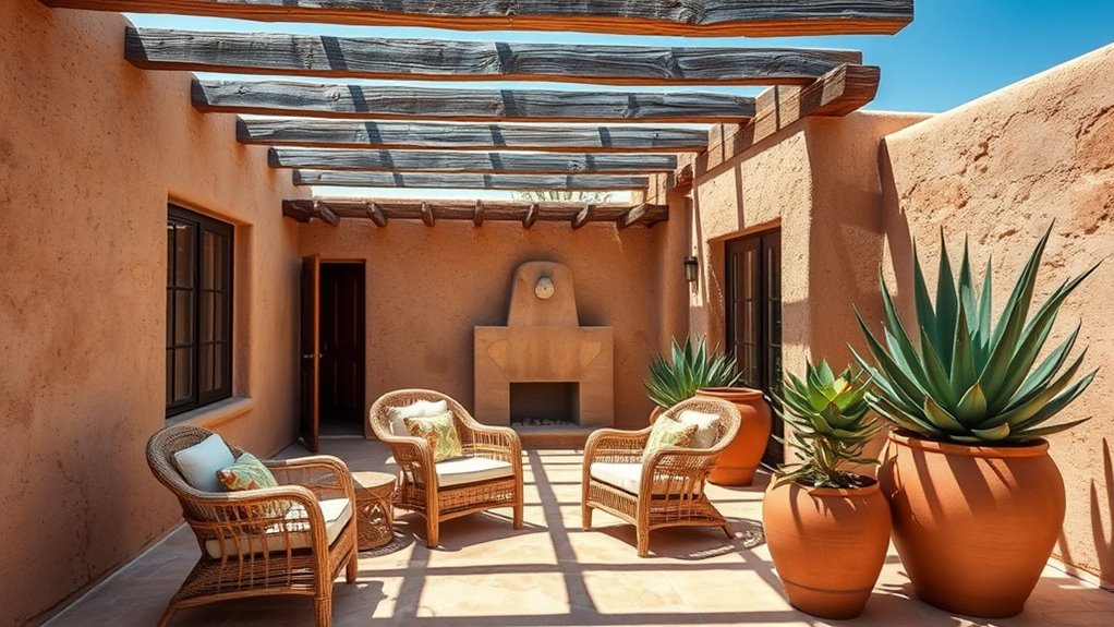 Choosing outdoor materials suited for the Sonoran climate isn’t just about durability—it’s about harmony with the environment. When you select heat-reflective tiles or drought-resistant plants, you inadvertently mirror the desert’s resilience, aligning function with beauty. The coincidence lies in how these materials, designed to withstand extreme temperatures, also enhance aesthetic appeal, creating a seamless blend of form and function. In this way, your outdoor space becomes a demonstration of thoughtful design rooted in the very essence of the Sonoran landscape.