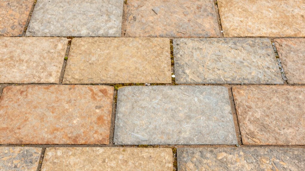 You should choose stones like granite and basalt, known for their weather resistance. Look for stones with a dense, fine-grained texture, which helps withstand harsh weather. Consider quarry location too, as stones from cooler climates often develop better durability. These factors guarantee your stone maintains its appearance over time. By selecting the right texture and source, you’ll enjoy a resilient, long-lasting surface that stays attractive for years.