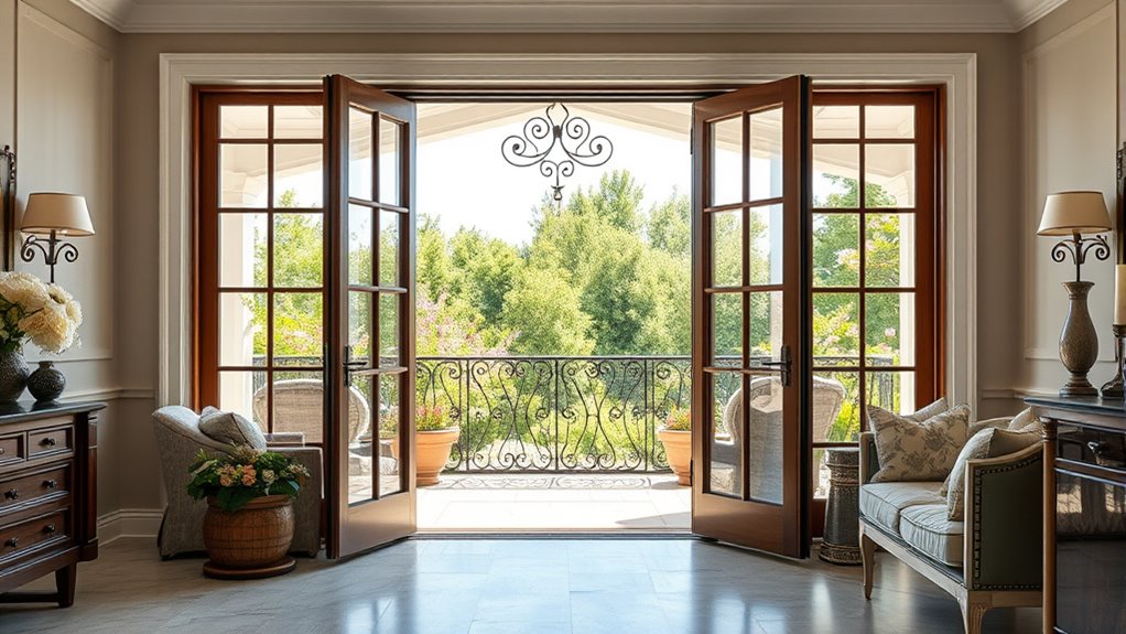 Think of your indoor-outdoor crossings as the gateway to seamless living; maintaining them guarantees longevity and performance. Regularly inspect seals and hardware for wear, clean tracks and hinges to prevent debris buildup, and lubricate moving parts to guarantee smooth operation. Weatherproofing elements must be checked seasonally, and caulking should be refreshed annually to prevent water intrusion. Proper upkeep preserves functionality, aesthetics, and energy efficiency, transforming your space into a resilient, inviting haven.