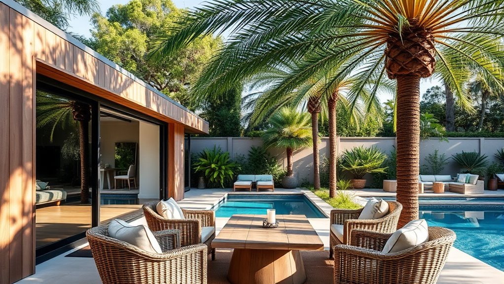 Design your pool house with complementary materials, strategic windows, and flexible shading for year-round comfort and style.