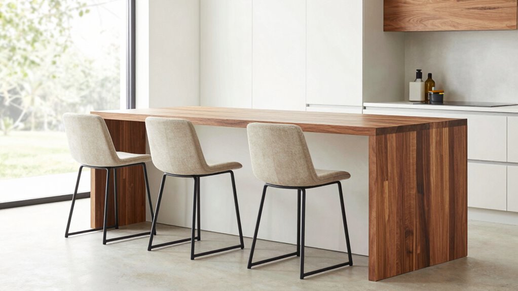 So, don’t let limited space hold you back from enjoying your island. By selecting slim, backless stools or those with a compact footprint, you’ll maximize seating without crowding. Even if you worry about comfort, look for stools with cushioned seats and adjustable heights. With these tips, you’ll create a functional, inviting space that feels open and stylish. Remember, the right stools can enhance your island’s charm without sacrificing comfort or space.