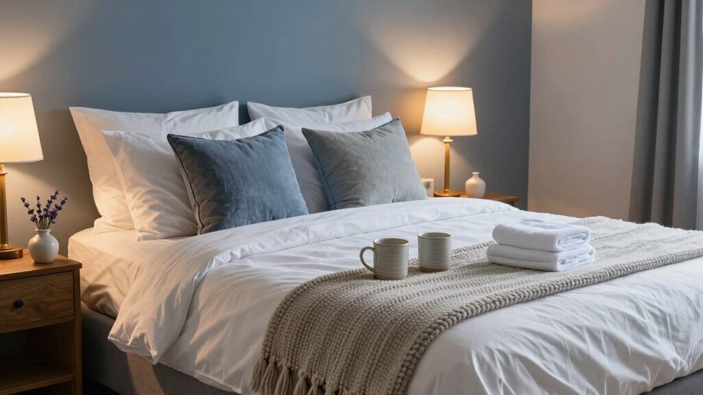 You might overlook the importance of guest pillow selection and ambient noise control, but these details considerably boost sleep quality. Choose pillows that support different sleep preferences, and consider adding blackout curtains or white noise machines to minimize disruptions. By focusing on these often-neglected elements, you create a more comfortable environment that helps your guests relax and enjoy restful sleep throughout their stay.