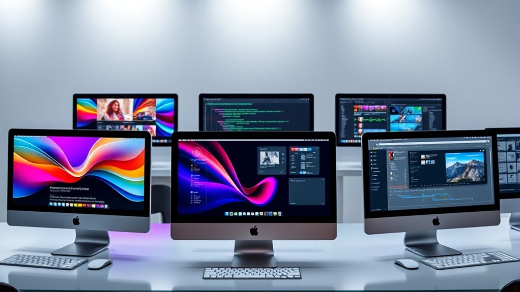 If you’re exploring the best 24-inch iMac configurations for 2025, I’ve found six options that fit various needs. Whether you’re a creative professional needing top-tier processing, or a casual user seeking a sleek, colorful design, there’s a perfect match. From models with the latest M4 chips to different storage and color choices, I’ll guide you through what works best for your usage. Keep going to discover the ideal setup for you.