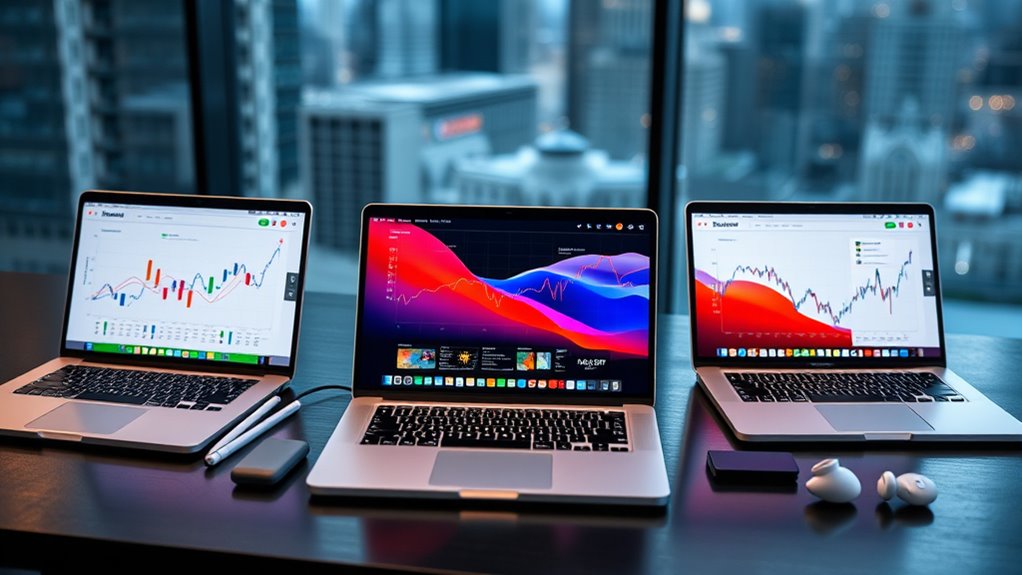 For 2025, I recommend the top three 2TB MacBook Pro options for power users. The 2024 MacBook Pro with M4 Max offers outstanding performance with a 14-core CPU and 32-core GPU, perfect for demanding workflows. The M4 Pro version balances power and portability, while the renewed M3 Max provides reliable performance at a better price. If you’re after high-end specs and seamless workflow, these models are your best choices—there’s more to discover below.