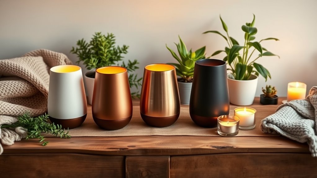Adjustable settings are key to tailoring your candle warmer lamp to suit your mood and needs. With features like dimmable lights and adjustable heat levels, you can easily control the ambiance and melting speed of your candles. Multiple brightness options let you choose a relaxed glow or a brighter light for more visibility. Dimmable features help create a calming environment for relaxing, reading, or dining. The ability to set different timer durations—such as 2, 4, or 8 hours—helps manage energy use and safety. Additionally, adjustable height or distance between the warmer and candle allows compatibility with various candle sizes and shapes. These customizable options give you full control over your space, making your candle warmer experience both flexible and personalized.