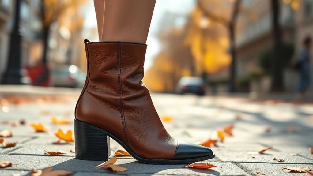 Color and design choices play a key role in selecting the perfect pair of fall ankle boots. I recommend sticking to versatile shades like black, brown, or taupe, as these easily match various outfits and occasions. Classic designs mixed with seasonal trends strike a good balance between modern appeal and timeless style, ensuring your boots stay fashionable over the years. Bright or bold colors like red or navy can make a statement but might limit outfit pairing options. Details such as double zippers, buckles, or decorative stitching add visual interest and reflect different personal styles. Choosing neutral or muted tones often offers the most flexibility, allowing your boots to complement casual, professional, and dressier fall looks effortlessly.