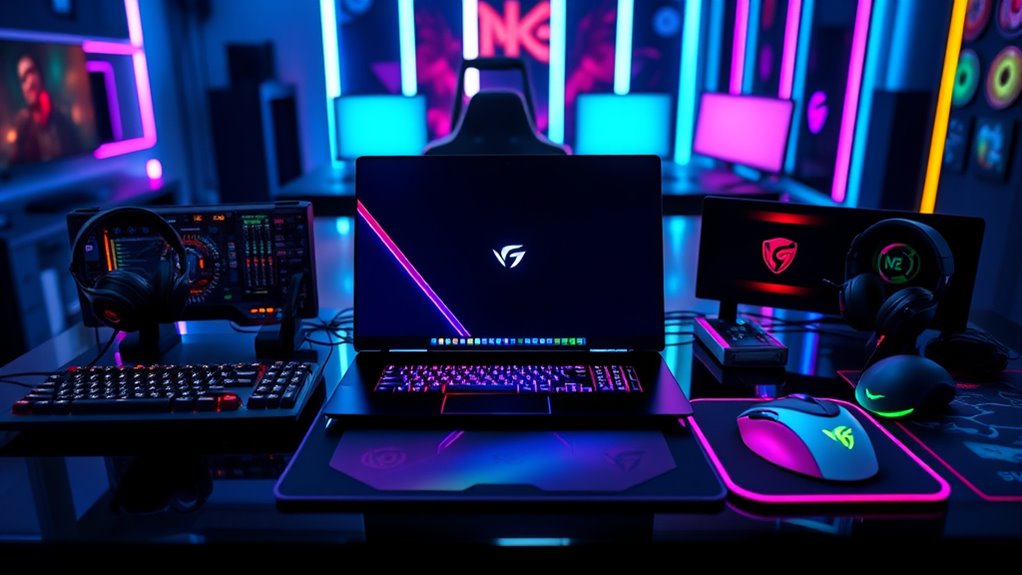 If you’re searching for the 15 best gaming laptops and accessories of 2025, I’ve got you covered. High-performance laptops feature powerful CPUs, dedicated GPUs, and high-refresh displays. Don’t forget excellent cooling solutions like the ChillCore Laptop Cooling Pad and KeiBn models with cool RGB lighting. You’ll also want a sturdy gaming backpack for protection. Each accessory plays an essential role in enhancing the gaming experience. Stick around; you’ll soon discover more exciting gear options!