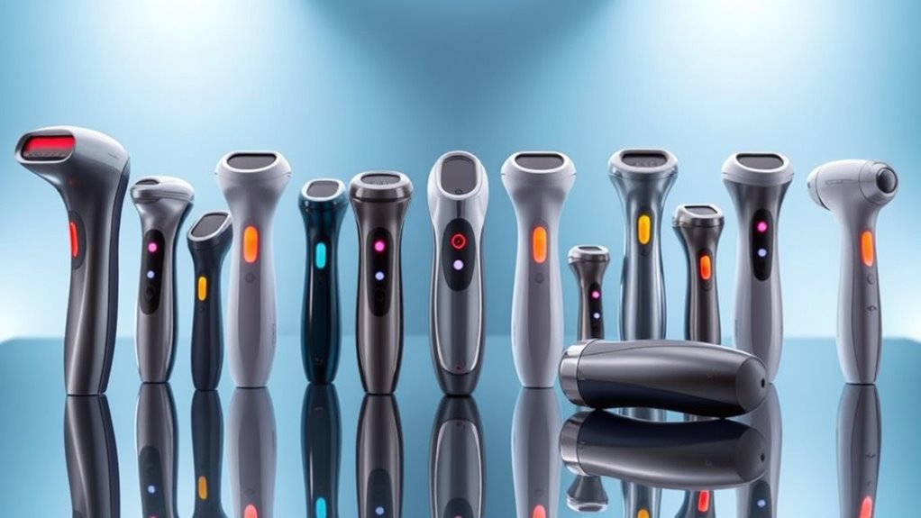 Choosing the right hair removal laser device requires careful attention to skin compatibility, as not all devices work equally well across different skin tones. Most lasers are most effective on light to medium skin, since darker skin can absorb too much energy, risking irritation or burns. Devices using wavelengths between 600-1200nm are generally suitable for these skin tones, but some have filters that make them safer for darker skin. It’s essential to check each device’s skin compatibility chart before use. Using a device outside its recommended range can lead to ineffective results or skin issues. Additionally, skin sensitivity varies; those with sensitive skin should look for devices with cooling features or adjustable energy settings. Conducting a patch test first helps guarantee safe, effective treatment.