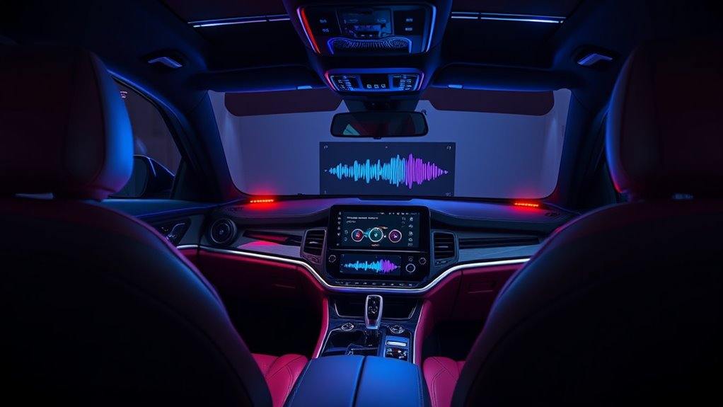 A high-end car audio system isn’t just about looks; customization features play a significant role in creating a personalized listening experience. I love how these systems often include customizable equalizers with multiple bands, letting me fine-tune the bass, midrange, and treble to match my preferences perfectly. The adjustable crossover settings also allow me to send specific frequency ranges to different speakers, enhancing sound clarity. Plus, the customizable lighting options add a fun aesthetic touch that matches my car’s interior. Many systems even provide programmable presets, making it easy to switch between sound settings for different drivers. With smartphone app integration, I can tailor sound parameters and control layouts for an audio experience that feels uniquely mine.