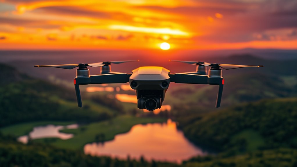 Understanding regulatory compliance and restrictions is essential for anyone looking to invest in high-end drones on Amazon. If your drone weighs under 249 grams, you’re in luck—most regions don’t require FAA registration or Remote ID, making it easier to stay legal. However, regulations can vary widely by country and region, so it’s vital to check local laws before taking off. Many advanced drones come with features like automatic return-to-home and geofencing, helping you avoid restricted airspace. Remember, there are areas like airports and national parks where flying is prohibited, no matter the drone’s weight. Staying updated with manufacturer releases ensures you adhere to evolving regulations and helps you avoid potential legal issues while enjoying your aerial adventures.