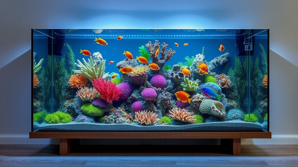 When it comes to creating a stunning centerpiece for your space, the design and aesthetic appeal of a fish aquarium play a vital role. High-end tanks often feature sleek, modern designs with clear, high-quality glass or acrylic that enhances visual clarity. Curved or frameless shapes and innovative configurations create eye-catching displays that complement contemporary decor. Customizable LED lighting with adjustable colors and intensities helps showcase aquatic life and adds visual drama. Artistic touches like integrated backgrounds, decorative rocks, and minimalist stands contribute to a cohesive, elegant look. Attention to craftsmanship, such as seamless silicone seals and polished edges, guarantees a refined appearance. All these elements combine to elevate the aquarium’s aesthetic value and make it a true focal point in any space.