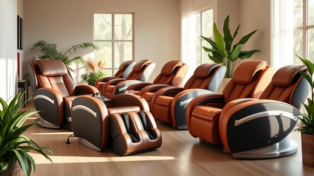 After trying out several high-end massage chairs, I felt like a marionette set free from its strings—every knot and tension just melted away. Investing in a quality massage chair isn’t just about luxury; it’s about reclaiming your relaxation. Imagine coming home after a long day and sinking into a chair that feels like a personal masseuse, ready to whisk your stress away. Trust me, your body will thank you, and you’ll wonder how you ever lived without it.