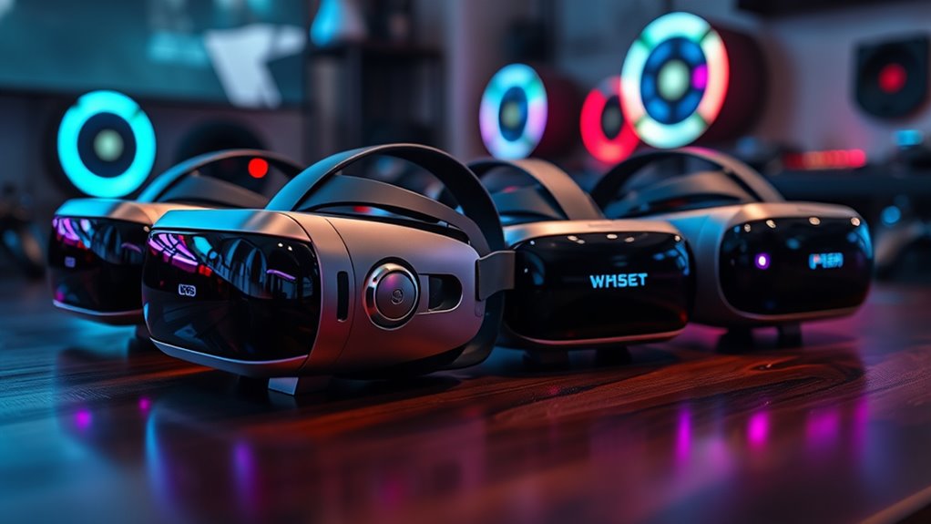 If you’re after the best high-end VR headsets for gaming in 2025, I’ve got you covered. I recommend options like the Meta Quest Pro and Quest 2, which offer stunning visuals, advanced tracking, and immersive sound. Other favorites include versatile headsets compatible with iPhone and Android, plus models with top-tier comfort and portability. Keep exploring, and I’ll guide you through the top picks so you can find the perfect headset for your immersive gaming adventures.