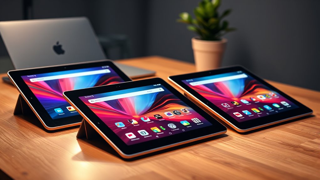 If you’re looking for the best Amazon Fire tablets of 2025, I’ve got you covered with the latest models like the Fire HD 10, Max 11, and Kid-friendly options. These tablets boast sharp displays, fast octa-core processors, and family-friendly features like parental controls and durable cases. Whether you want a versatile media device or a kid-proof tablet, the top picks are all about performance and safety. Keep exploring to discover which one suits your needs best.