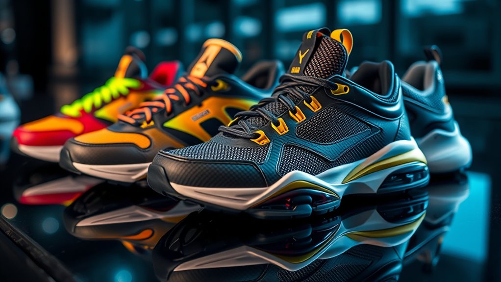 Unique design elements are what make limited-edition athletic shoes truly stand out, offering more than just footwear but a statement piece. I look for features like metallic accents, special patterns, or cultural motifs that instantly catch the eye and convey exclusivity. Custom stitching, embossed logos, or textured overlays add depth and rarity, making each pair feel unique. Bold color schemes or gradient effects, often exclusive to limited runs, emphasize their collectible nature. Innovative materials like satin or metallic foils create distinctive textures and finishes that set these shoes apart. Many designs draw inspiration from cultural celebrations, sports milestones, or artistic collaborations, enhancing their visual appeal. Ultimately, these elements reflect creativity and craftsmanship, making limited editions highly desirable for sneakerheads seeking standout, one-of-a-kind footwear.