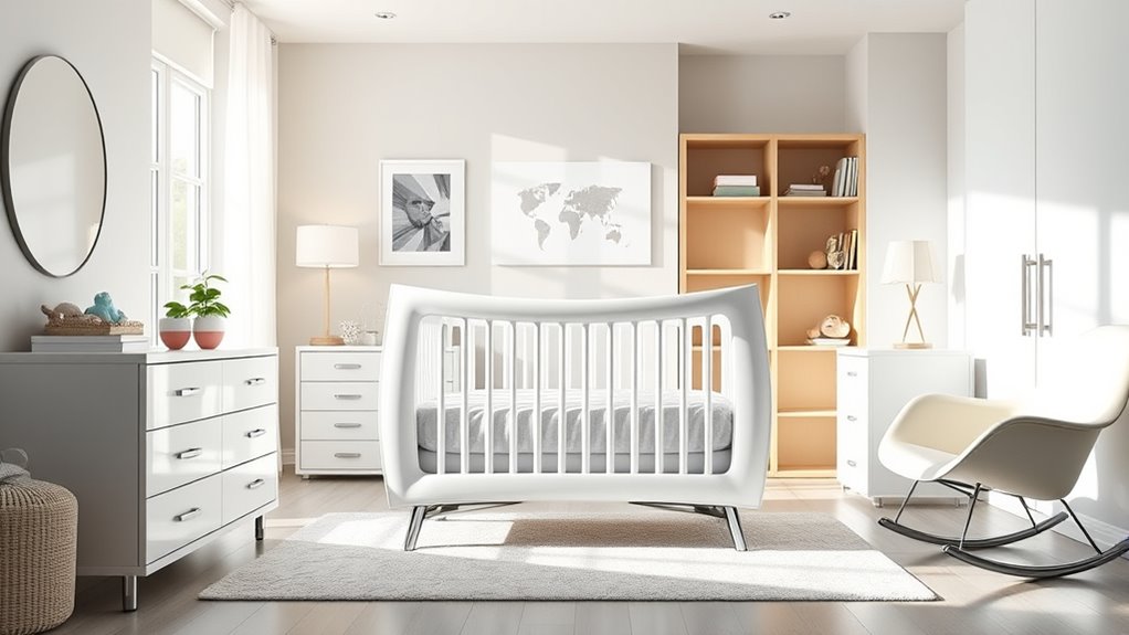If you’re searching for the best luxury convertible cribs in 2025 that blend style and long-term usability, I’ve got you covered. I’ve looked into cribs that are not only beautifully designed but also prioritize safety with certifications like Greenguard Gold. These cribs often convert from crib to toddler, daybed, or full-size bed, making them perfect investments. If you keep exploring, you’ll discover top options that fit your style and guarantee your child’s safety and comfort.