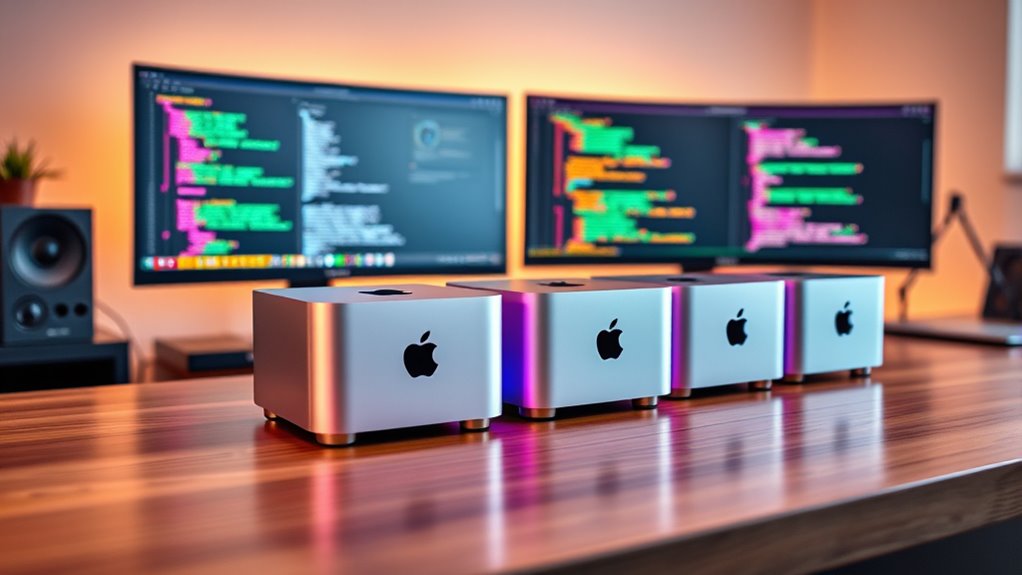 Choosing the right Mac mini feels like finding the perfect gear for a journey—you want power, reliability, and a smooth ride. With these top options in 2025, I’m confident you’ll find a device that seamlessly keeps your code flowing, no matter how complex. Imagine sitting at your desk, the glow of your screen illuminating your workspace, as your Mac mini effortlessly handles every task—ready to turn your ideas into reality.