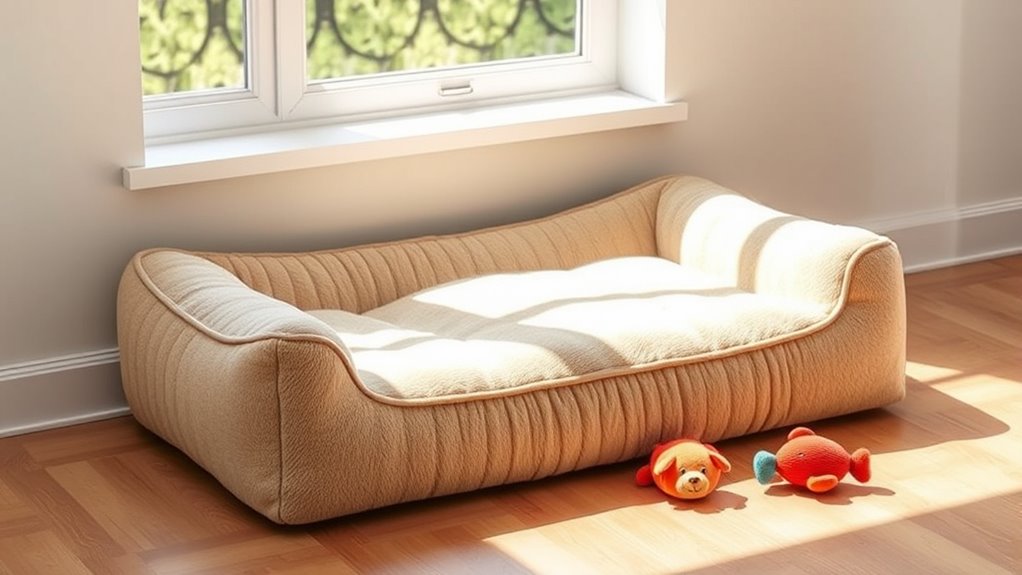 Ensuring the safety and non-toxicity of an orthopedic dog pillow is essential for your pet’s health. I always check that the materials are pet-safe, non-toxic, and free from harmful chemicals like heavy metals or pesticides. Certifications such as CertiPUR-US or OEKO-TEX Standard 100 are key indicators that the foam and fabrics meet strict safety standards. I avoid pillows with synthetic dyes, artificial fragrances, or flame retardants, as these can irritate my dog’s skin and respiratory system. Hypoallergenic, breathable fabrics are also a priority to reduce allergy risks and promote healthy skin. Additionally, I regularly inspect the pillow for signs of wear or chemical odors and replace it if I notice any unpleasant smells or damage. Safety always comes first.