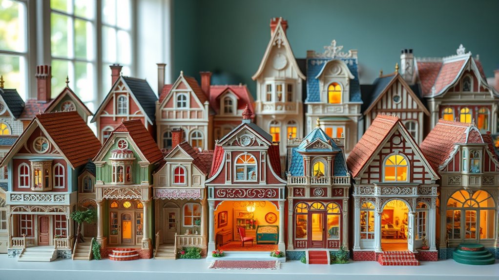 If you’re looking for the 14 best premium dollhouses with accessories, I’ve got you covered. These sets feature high-quality materials like sustainable wood and detailed accessories that spark imagination and craft realistic play environments. From charming furniture to miniature figures, they cater to kids and collectors alike. Whether you want a large, versatile dollhouse or themed accessories, these options combine durability, safety, and aesthetic appeal. Keep exploring to discover which dollhouse fits your needs perfectly.