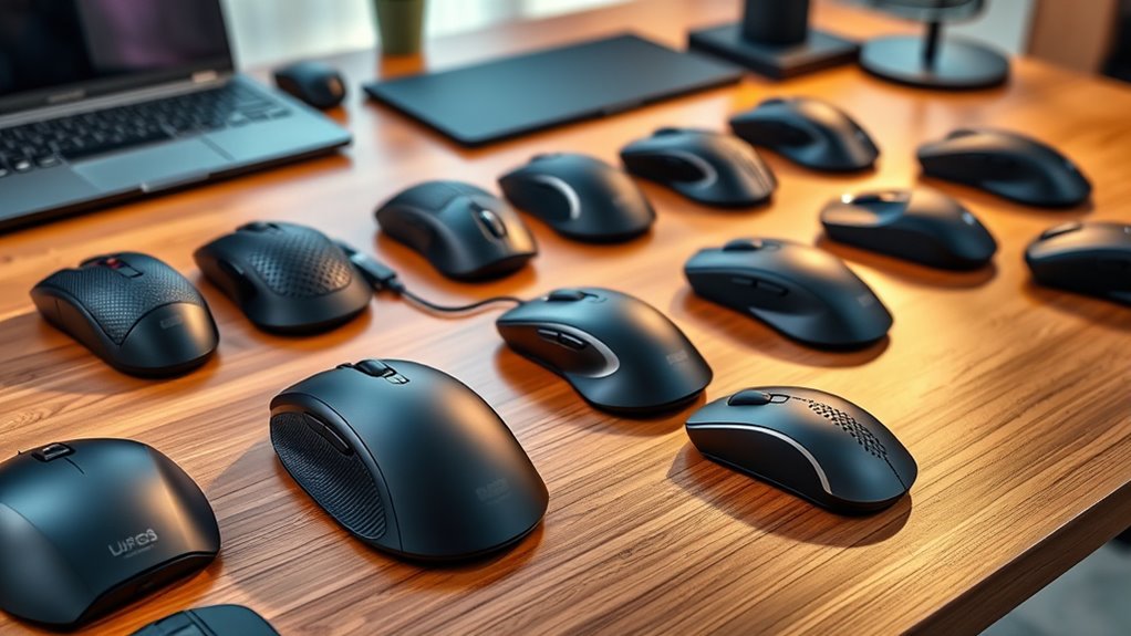 Just like finding the perfect grip on a paintbrush transforms an artist’s work, choosing the right ergonomic mouse elevates your precision and comfort. I remember switching to a vertical mouse after days of discomfort, and suddenly, my work felt effortless—like a well-tuned instrument. Investing in a premium ergonomic mouse isn’t just about comfort; it’s about revealing your full potential. So, pick the one that feels right, and watch your productivity soar.
