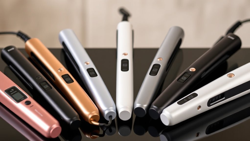 A wide temperature range, such as 250°F to 450°F, gives you the flexibility to customize heat settings based on your hair type and needs. With precise control, you can minimize heat damage, especially if you have delicate or chemically treated hair. Multiple heat options allow you to choose a lower temperature for fine or fragile hair, and higher settings for thick or curly hair. Digital displays and adjustable dials make it easy to monitor and tweak the temperature during styling, ensuring you stay within the most suitable heat range. Quick heat-up times and consistent temperature maintenance are often features of models with a broad, accurate range. Overall, a versatile temperature range helps you achieve the perfect style without compromising hair health.