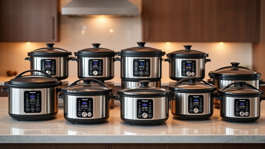 - Top premium slow cookers with WiFi offer multi-functionality, including sous vide, roasting, steaming, and baking for versatile meal prep.