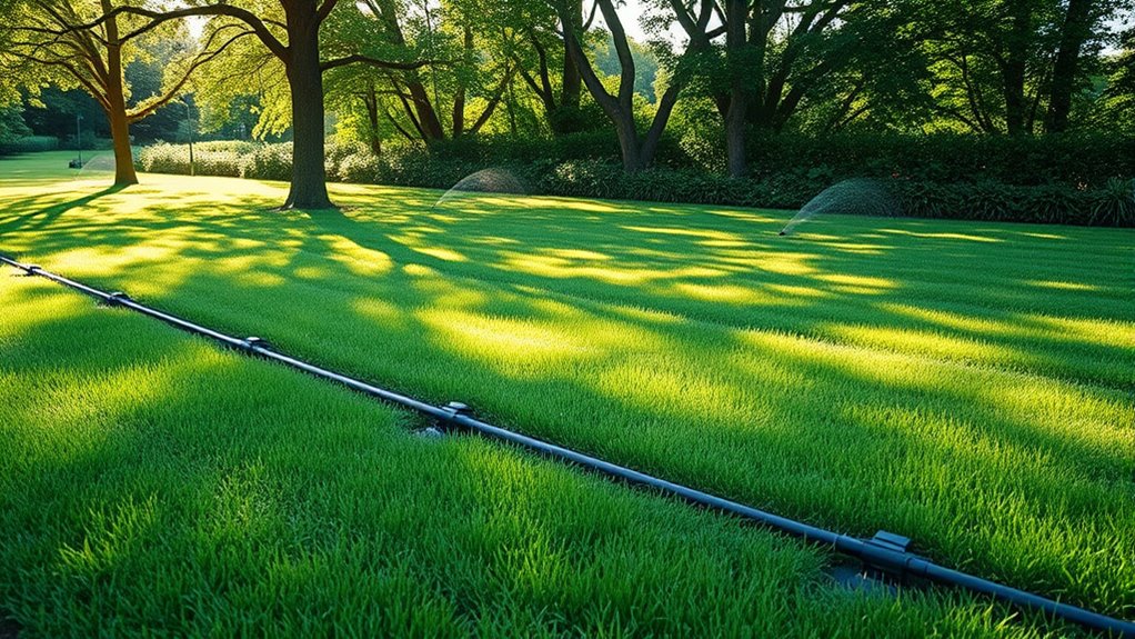 These systems adapt to seasonal weather changes by using built-in sensors and weather data integration. I’ve noticed they automatically adjust watering schedules based on rainfall, temperature, and humidity levels, ensuring my lawn gets just the right amount of water. This smart technology prevents overwatering during rain or drought conditions, saving water and maintaining a healthy lawn without my constant oversight. It’s like having a personal gardener that responds to the weather.