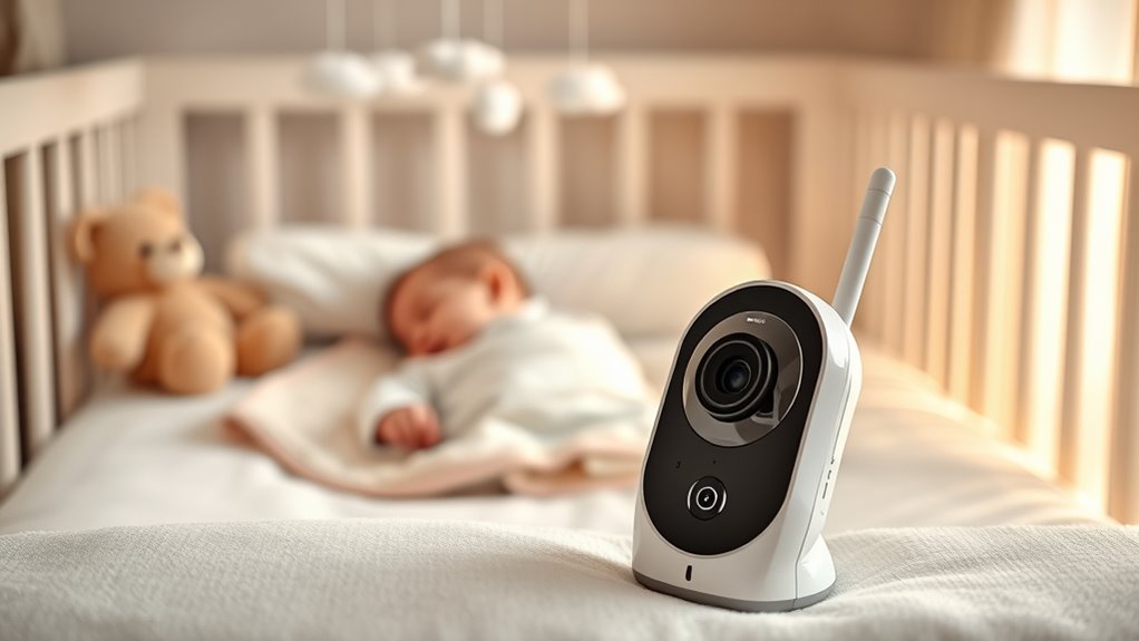 Choosing a smart baby monitor with camera can be straightforward if you prioritize ease of setup. Look for models with plug-and-play features that auto-connect via Wi-Fi or simple app registration, so you don’t waste time on complicated configurations. Clear, step-by-step instructions and intuitive app interfaces make installation quick and stress-free. Some monitors offer quick setup options like QR code scanning or one-touch pairing, which can save you valuable time. It’s also helpful if the device supports multi-user access from the start, allowing family members to connect easily. Lastly, check if the product provides responsive customer support or all-inclusive setup guides. These resources can be invaluable if you encounter any issues, ensuring your monitor is up and running with minimal effort.