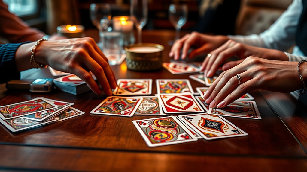 Player interaction dynamics are a key factor in selecting a strategy card game that fits your social style and competitive spirit. I consider how much players influence each other through bluffing, negotiation, or forming alliances, as these elements shape the game’s social atmosphere. Some games promote direct confrontation with challenging, blocking, or stealing mechanics, requiring keen reading of opponents’ intentions. Others lean toward cooperative tactics or strategic sabotage, fostering different interactions. The frequency and intensity of these interactions impact game length and engagement, making each experience unique. Understanding whether you prefer high interaction games where players compete fiercely or more subdued, strategic discussions helps you choose a game that aligns with your desired social dynamic and complexity level.